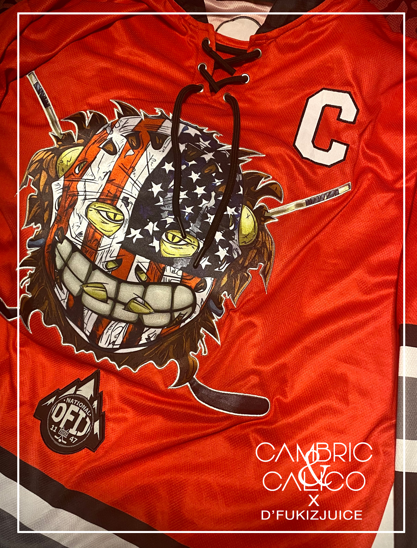 The Concrete Jungle King Hockey Jersey Sweatsuit is a collaboration we did with known Yonkers Graffiti Artist D'FUKIZJUICE. His creative style mixed in with ours combines for some dope exclusive content.